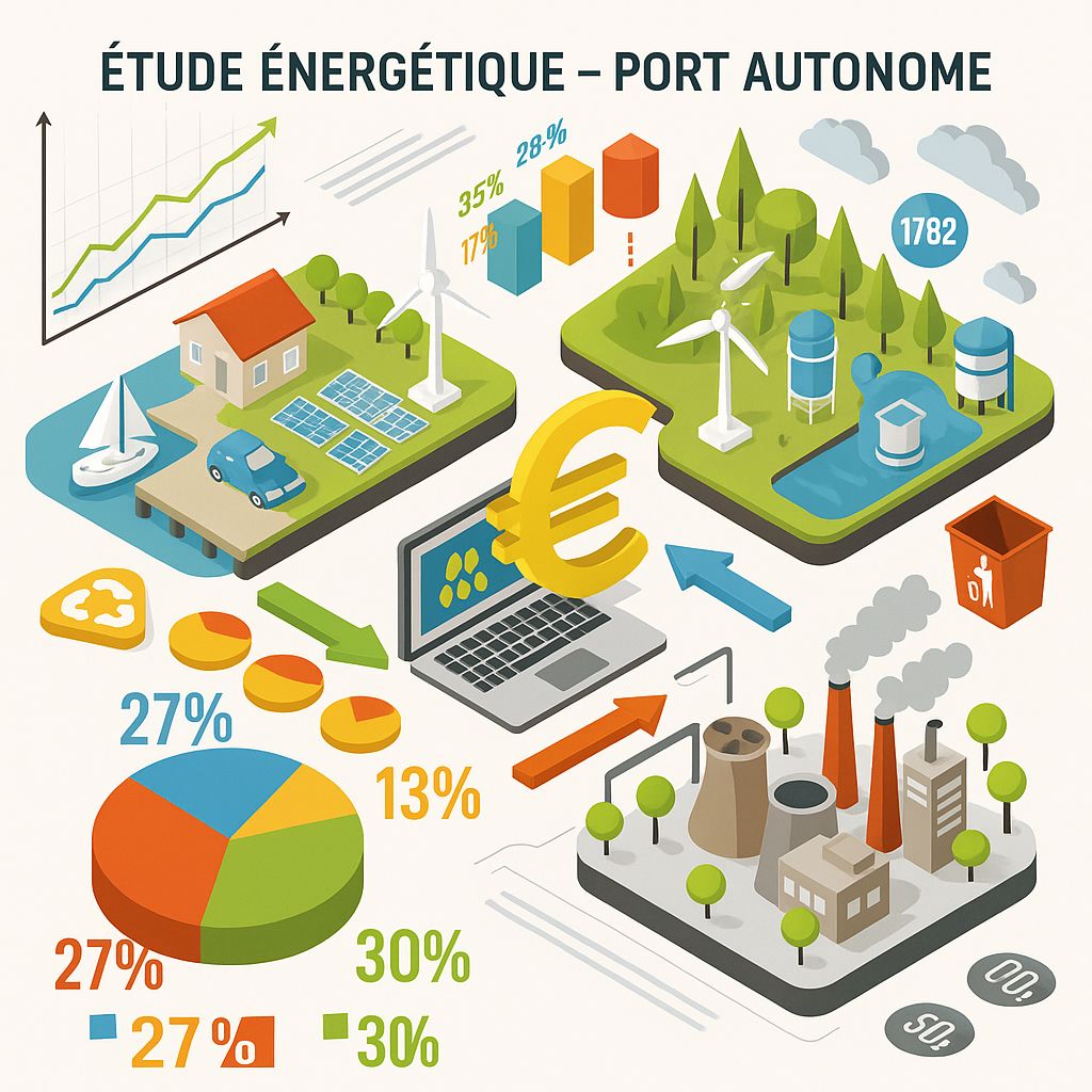 Autonomous ports are facing growing energy needs: electrification of ships at berth, port facilities, logistics, etc. Our mission? To design a renewable energy solution that provides a 30% coverage rate for energy consumed, with an 80% self-consumption rate.